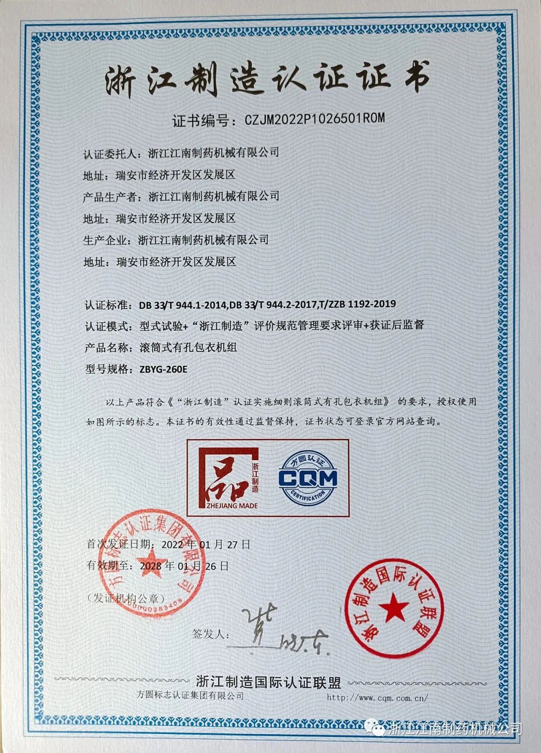“浙江制造”是以“区域品牌、先进标准、市场认证、国际认同”为核心,以“标准+认证”为手段,集质量、技术、服务、信誉为一体,经市场与社会公认,代表浙江制造业先进性的区域品牌形象标识,是浙江制造业的“标杆”和“领导者”,是高品质产品的代名词。